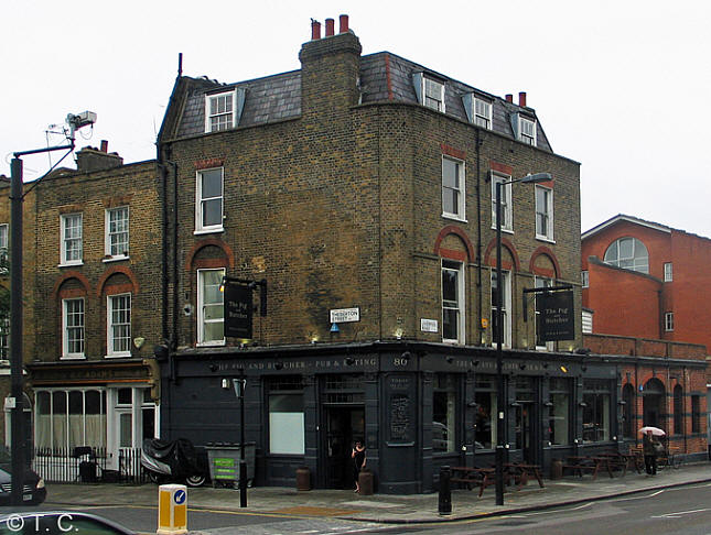 The White Horse was on the corner of Theberton Street and Liverpool Road. As a sixteen year old it was illegal for me to drink alcohol. My older brother aged twenty-one used to sneak me in the pub on a Saturday lunchtime to play ‘bar billiards’. Usually I was served a pint (or two) of bitter. It’s strange to think of Islington as a tough inner-city area as it’s now gentrified. The White Horse was an Irish pub, or as we called it a ‘Paddy pub.’ The fights were legendary as were the smashed windows. I would often see the results of the fights as I walked past on my way to school. Islington is gentrified and so, inevitably, there’s been a name change; to the repulsive Pig and Butcher. Do the owners really feel their wealthy clientele want to be associated with abattoirs? And they probably know that pigs are sensitive, intelligent animals.