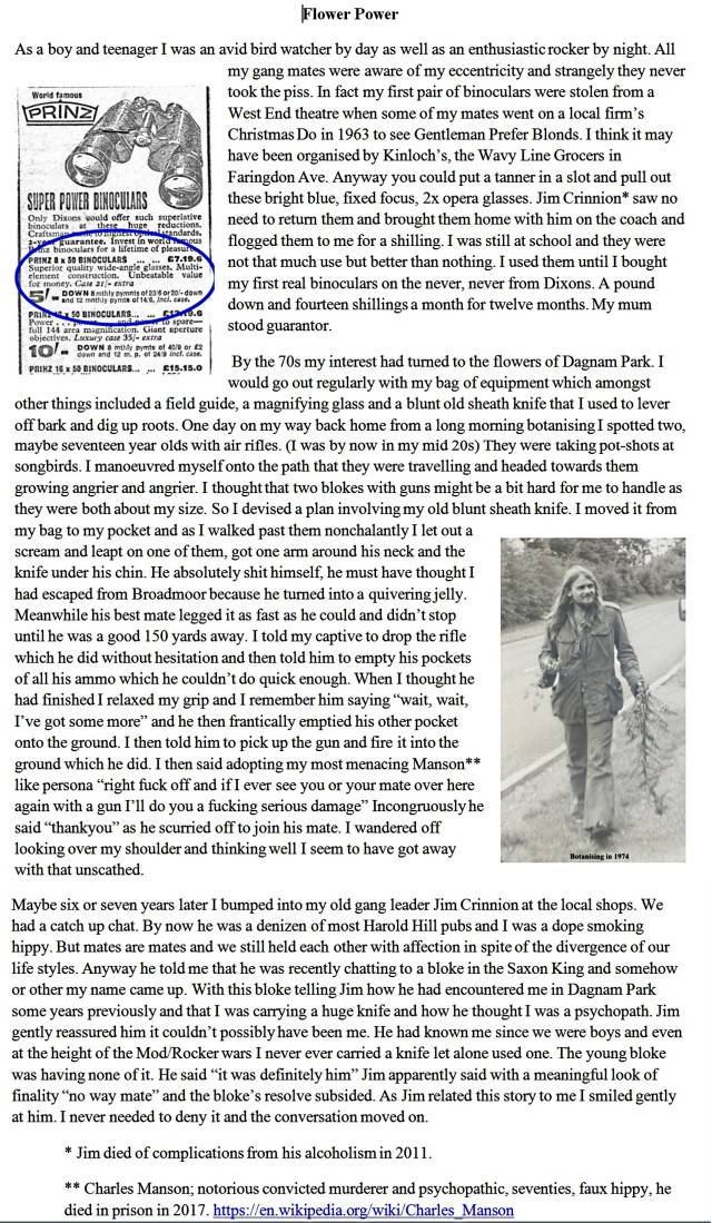 This entry was posted in Autobiography, Humour, wildlife and tagged 1960s, casual vandalism, environmentalist, Hippy, song birds. Bookmark the permalink.