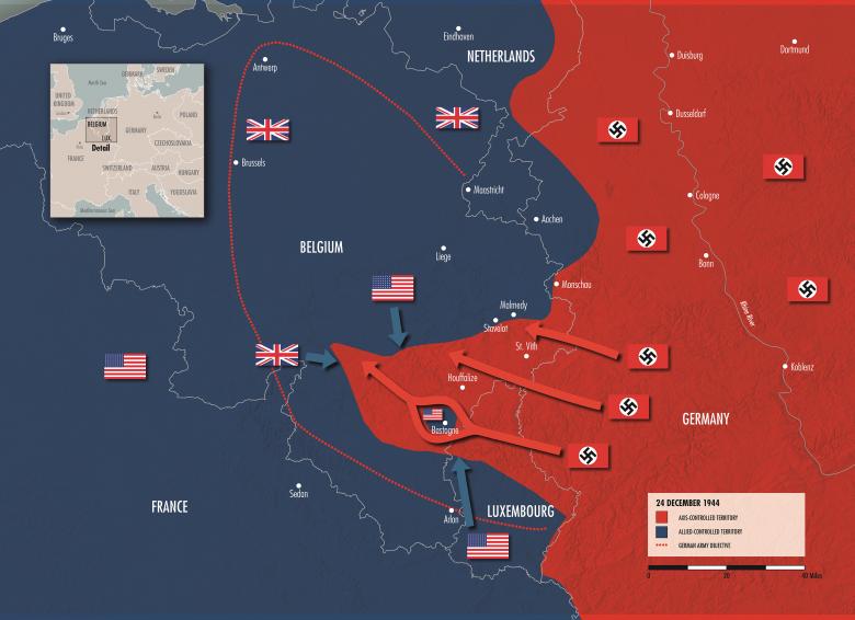 The USA Air Force and RAF had air supremacy and by December 1944 the Luftwaffe ceased to be a meaningful combat force. “…. [the] 52,000 AAF and 12,000 RAF sorties [in four weeks] against German positions and supply lines immediately doomed Hitler’s last offensive.”4 The Allies also had numerical and logistical supremacy on the ground.5